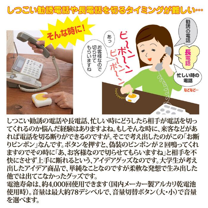・ワンタッチでピンポン音、自然に電話を切るきっかけ作りに